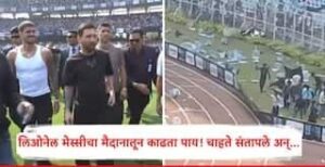 कोलकाता : आज GOAT India Tour साठी लियोनेल मेस्सी १४ वर्षांनंतर पहिल्यांदाच भारतात आला आहे. त्यामुळे अर्जेंटिनाचा दिग्गज फुटबॉलपटू पाहण्यासाठी शहरातील विविध ठिकाणी चाहत्यांची मोठी गर्दी जमली होती. मात्र हे सगळे सुरळीत सुरू असतानाच सॉल्ट लेक स्टेडियममधील त्याची भेट पूर्व गोंधळ निर्माण झाला होता . फक्त १० मिनिटांसाठी मेस्सी स्टेडियममध्ये थांबल्यामुळे संतप्त चाहत्यांनी स्टँडमधून बाटल्या फेकत तोडफोड सुरू केली.