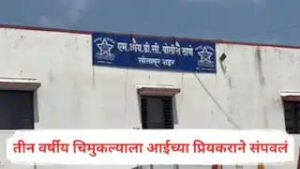सोलापूर – सोलापूर जिल्ह्यात माणुसकीला काळीमा फासणारी धक्कादायक घटना समोर आली आहे. तीन वर्षांच्या चिमुकल्याची त्याच्याच आईच्या प्रियकराने गळा दाबून हत्या केल्याचा प्रकार उघडकीस आला आहे. या प्रकरणी पोलिसांनी आरोपीला अटक केली असून पुढील तपास सुरू आहे. मृत चिमुकल्याचे नाव फरहान जाफर शेख (वय ३) असे आहे. तर आरोपीचे नाव मौलाली उर्फ अकबर अब्दुल रज्जाक मुल्ला असे असून, त्याला सोलापूरच्या एमआयडीसी पोलिसांनी अटक केली आहे.