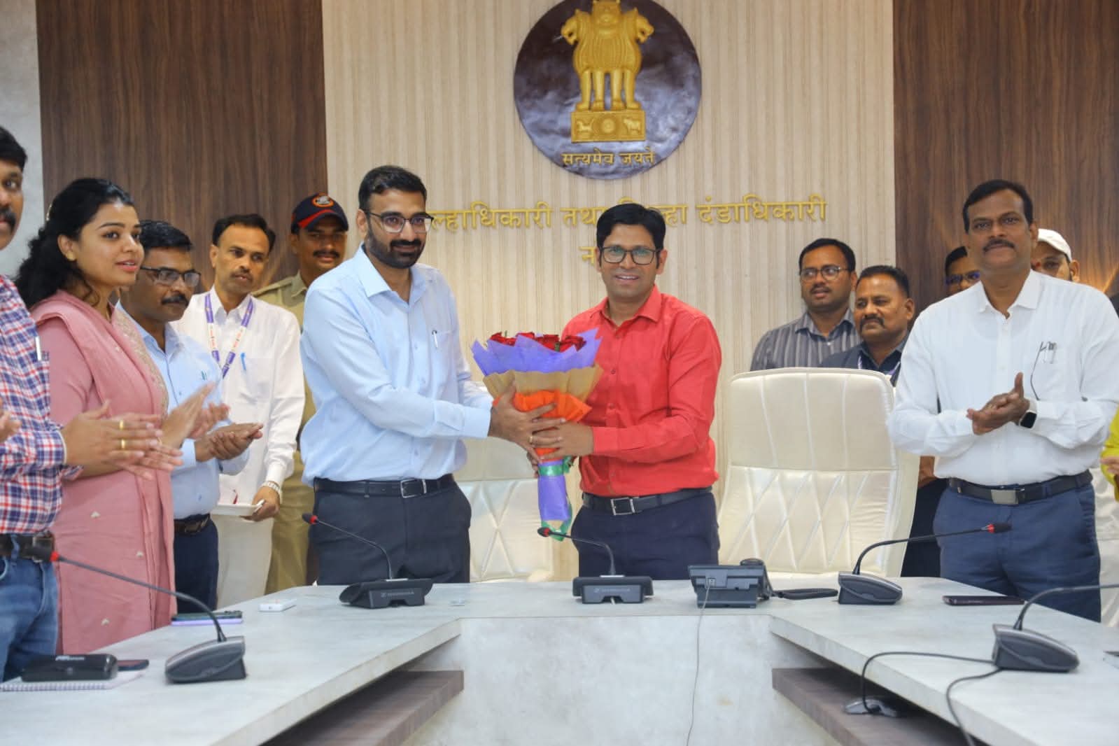 यावेळी त्यांचे जिल्हाधिकारी कार्यालयामध्ये वरिष्ठ अधिकाऱ्यांमार्फत स्वागत झाले. यावेळी मावळते जिल्हाधिकारी अभिजीत राऊत यांच्यासह जिल्हा परिषदेच्या मुख्य कार्यकारी अधिकारी मीनल करनवाल, महानगरपालिका आयुक्त डॉ. महेश डोईफोडे, सहाय्यक जिल्हाधिकारी मेघना कावली, अतिरिक्त जिल्हाधिकारी पांडुरंग बोरगावकर, निवासी उपजिल्हाधिकारी महेश वडदकर, सर्व उपविभागीय अधिकारी, तहसीलदार व कर्मचाऱ्यांनी त्यांचे स्वागत केले.