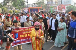 चंद्रपूर : छत्रपती शिवाजी महाराज जयंतीनिमित्त चंद्रपूर शहरात भव्य पदयात्रेचे आयोजन करण्यात आले. क्रीडा व युवक सेवा संचालनालय, पुणे यांच्या निर्देशानुसार जिल्हा प्रशासन, चंद्रपूर महानगरपालिका, जि.प. शिक्षण विभाग, जिल्हा क्रीडा अधिकारी कार्यालय तसेच मेरा युवा भारत यांच्या संयुक्त विद्यमाने गुरुवारी (दि. १९ ) सकाळी ८ वाजता छत्रपती शिवाजी महाराज चौक येथून पदयात्रेला उत्साहात प्रारंभ झाला.