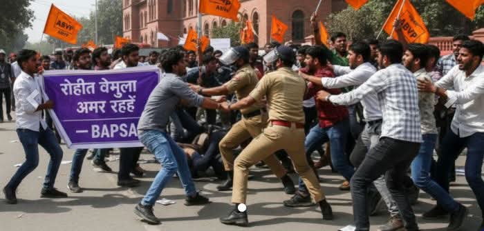 लखनौ विद्यापीठात रोहित वेमुला स्मृती शांततापूर्ण मार्चवर एबीव्हीपीच्या कार्यकर्त्यांवर हल्ला, एक जखमी; बिरसा आंबेडकर फुले विद्यार्थी संघटनेचे आयोजन January 25, 2026 No Comments